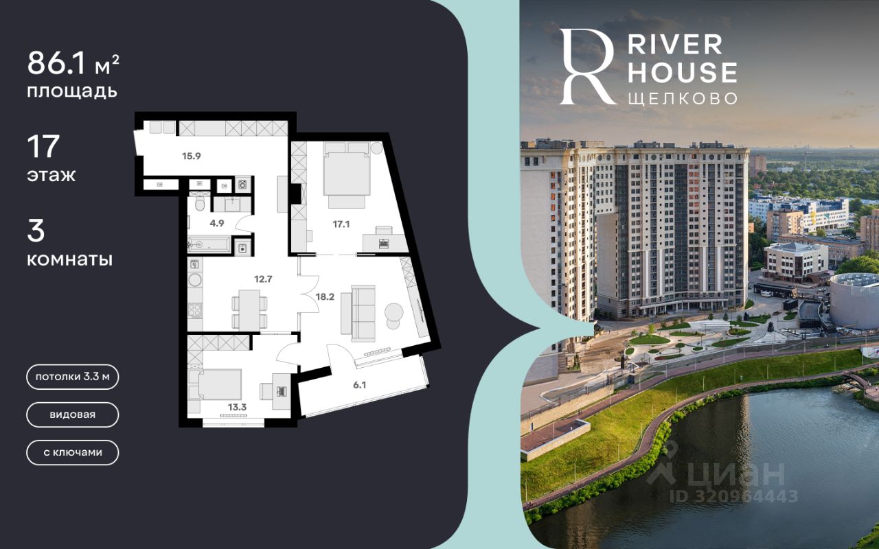 Просторная, светлая семейная квартира в жилом комплексе бизнес-класса RIVER HOUSE Щёлково! Семейная ипотека от 3.5%. Беспроцентная рассрочка. Индивидуальные дисконтные предложения. Дом сдан. Оформление в собственность. Ключи сразу после заключения договора купли-продажи. RIVER HOUSE Щёлково это изысканный жилой проект полноценного бизнес-класса с фокусом на качественное семейное проживание в самом центре города на набережной реки Клязьма. - Оригинальная архитектура, увеличенная площадь остекления, эксклюзивная вечерняя подсветка фасада. - Просторные семейные квартиры с высокими потолками 3.3 м в вариантах черновой, предчистовой и чистовой отделки. - Роскошные трехуровневые пентхаусы с открытыми террасами на кровле. - Лаунж-зона на кровле, где можно устроить уютный вечер с друзьями, отдохнуть и полюбоваться панорамными видами на город. - Вся необходимая инфраструктура и сервисы на первых двух этажах: детский сад, супермаркет, институт красоты, медицинский центр, стоматология, ПВЗ и многое другое. - В каждом подъезде 4 лифта один со спуском в паркинг, лобби с авторским дизайном, консьерж-сервисом и мягкой зоной ожидания. - Круглосуточная охрана, видеонаблюдение, бесключевая система доступа. - Двухуровневый подземный паркинг на 540 машино-мест и 260 кладовых. - Закрытый двор-парк без машин с ландшафтным дизайном, детскими и спортивными площадками, летним амфитеатром и собственным спуском к набережной. - Шаговая доступность ко всей инфраструктуре центра города: школы, детские сады, гимназии, кафе и рестораны, кинотеатр, перинатальный центр. - Три благоустроенных парка, в один из которых - Солнечные часы - можно спуститься со двора дома. RIVER HOUSE Щёлково это дом-впечатление и особый статус, которые останутся вашим детям и станут частью фамильной истории.