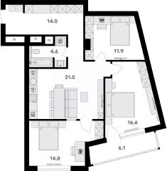 Площадь кухни21 м²