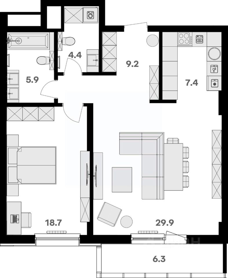 - Вся необходимая инфраструктура и сервисы на первых двух этажах: детский сад, супермаркет, институт красоты, медицинский центр, стоматология, ПВЗ и многое другое.