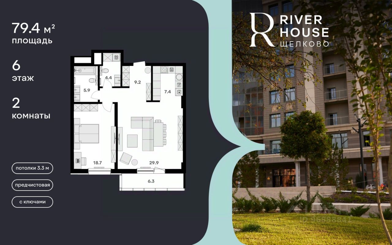 Просторная, светлая семейная квартира с предчистовой отделкой в жилом комплексе бизнес-класса RIVER HOUSE Щёлково!