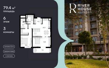 Просторная семейная квартира в жилом комплексе RIVER HOUSE Щёлково. Это изысканный жилой проект премиум-класса с фокусом на качественное семейное проживание в самом центре города на набережной реки Клязьма.
