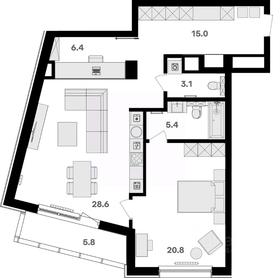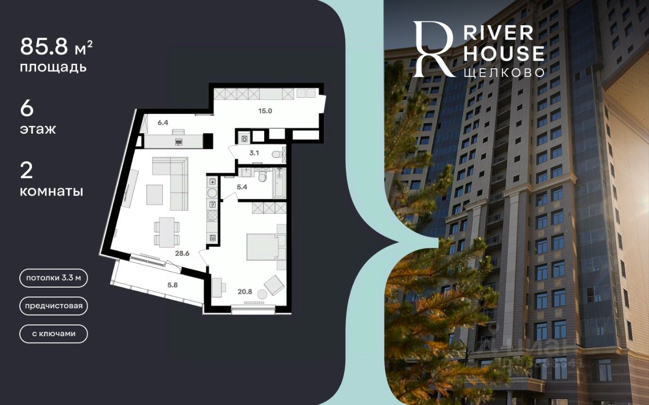 Просторная, светлая семейная квартира с предчистовой отделкой в жилом комплексе бизнес-класса RIVER HOUSE Щёлково!