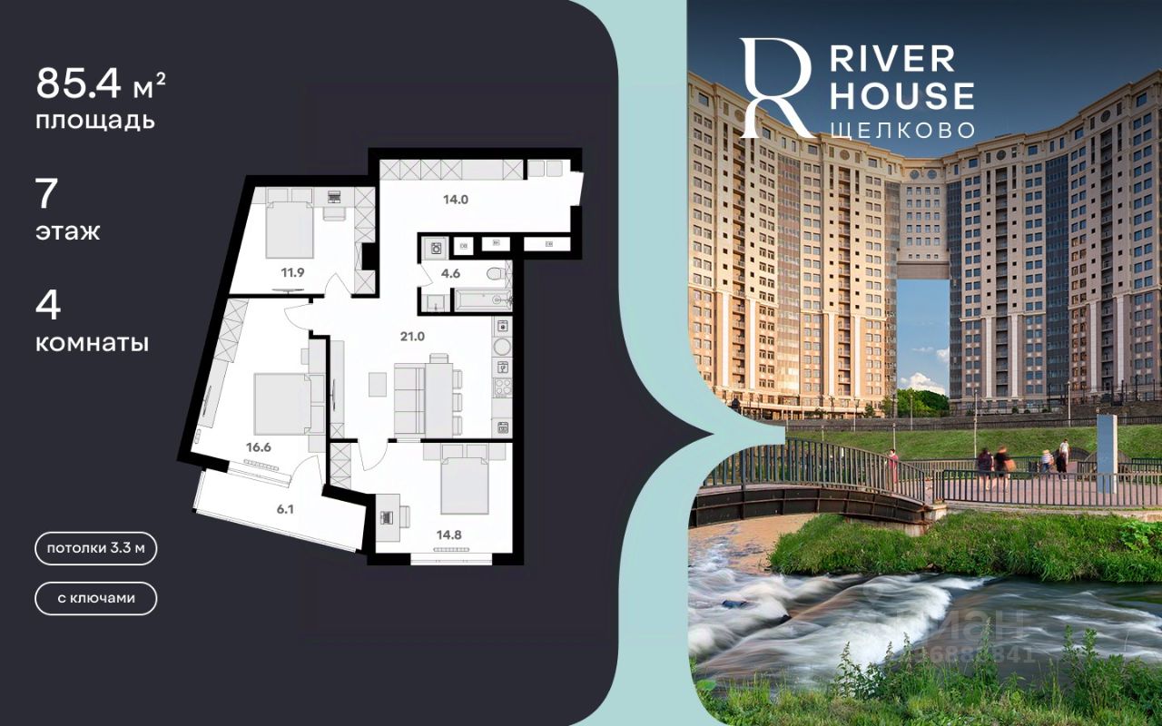 Просторная, светлая семейная квартира в жилом комплексе бизнес-класса RIVER HOUSE Щёлково! Семейная ипотека от 3.5%. Беспроцентная рассрочка. Индивидуальные дисконтные предложения. Дом сдан. Оформление в собственность. Ключи сразу после заключения договора купли-продажи. RIVER HOUSE Щёлково это изысканный жилой проект полноценного бизнес-класса с фокусом на качественное семейное проживание в самом центре города на набережной реки Клязьма. - Оригинальная архитектура, увеличенная площадь остекления, эксклюзивная вечерняя подсветка фасада. - Просторные семейные квартиры с высокими потолками 3.3 м в вариантах черновой, предчистовой и чистовой отделки. - Роскошные трехуровневые пентхаусы с открытыми террасами на кровле. - Лаунж-зона на кровле, где можно устроить уютный вечер с друзьями, отдохнуть и полюбоваться панорамными видами на город. - Вся необходимая инфраструктура и сервисы на первых двух этажах: детский сад, супермаркет, институт красоты, медицинский центр, стоматология, ПВЗ и многое другое. - В каждом подъезде 4 лифта один со спуском в паркинг, лобби с авторским дизайном, консьерж-сервисом и мягкой зоной ожидания. - Круглосуточная охрана, видеонаблюдение, бесключевая система доступа. - Двухуровневый подземный паркинг на 540 машино-мест и 260 кладовых. - Закрытый двор-парк без машин с ландшафтным дизайном, детскими и спортивными площадками, летним амфитеатром и собственным спуском к набережной. - Шаговая доступность ко всей инфраструктуре центра города: школы, детские сады, гимназии, кафе и рестораны, кинотеатр, перинатальный центр. - Три благоустроенных парка, в один из которых - Солнечные часы - можно спуститься со двора дома. RIVER HOUSE Щёлково это дом-впечатление и особый статус, которые останутся вашим детям и станут частью фамильной истории.