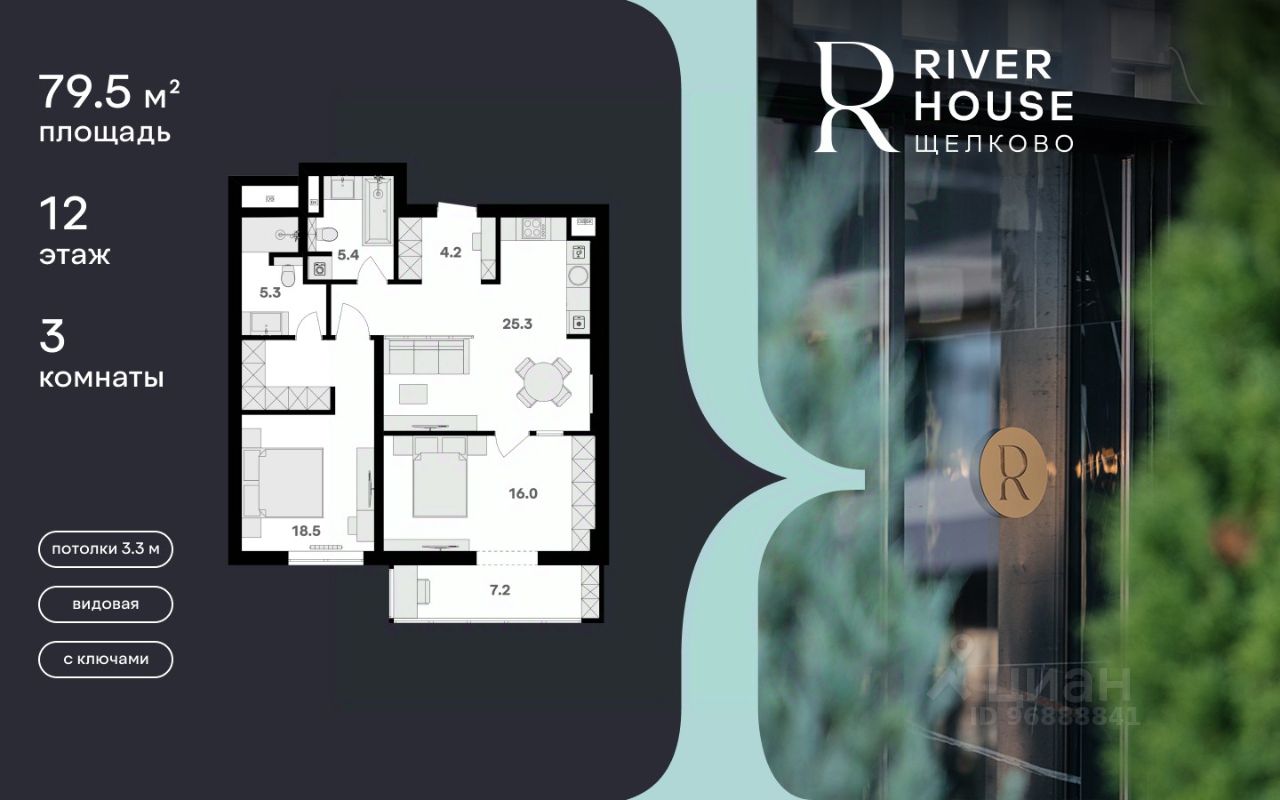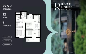 Просторная семейная квартира в жилом комплексе RIVER HOUSE Щёлково. Это изысканный жилой проект премиум-класса с фокусом на качественное семейное проживание в самом центре города на набережной реки Клязьма.