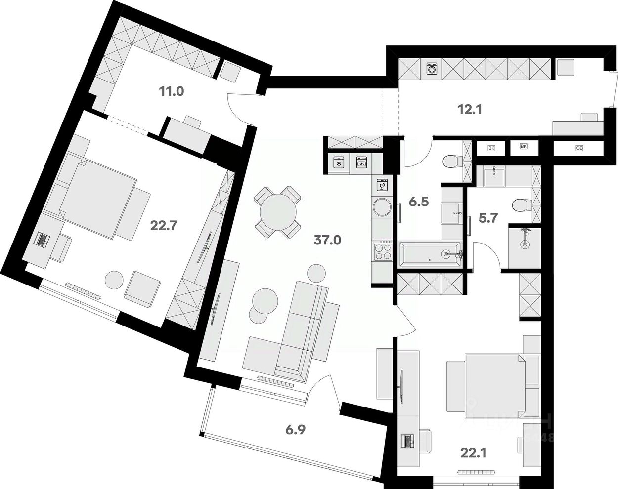 37 м²