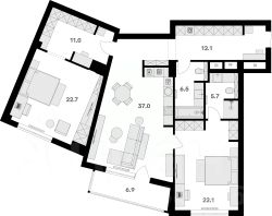 Площадь кухни37 м²