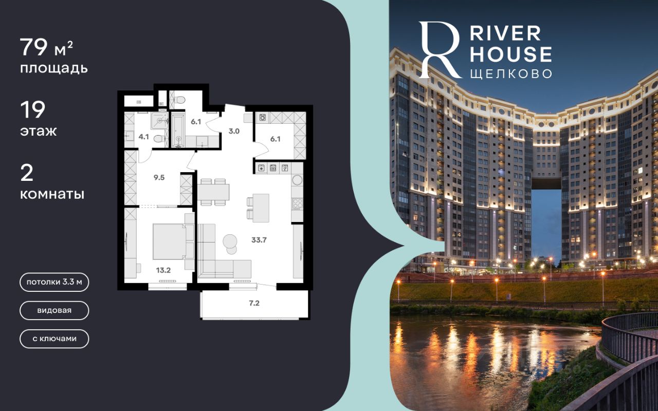 Просторная, светлая семейная квартира в жилом комплексе бизнес-класса RIVER HOUSE Щёлково! Семейная ипотека от 3.5%. Беспроцентная рассрочка. Индивидуальные дисконтные предложения. Дом сдан. Оформление в собственность. Ключи сразу после заключения договора купли-продажи. RIVER HOUSE Щёлково это изысканный жилой проект полноценного бизнес-класса с фокусом на качественное семейное проживание в самом центре города на набережной реки Клязьма. - Оригинальная архитектура, увеличенная площадь остекления, эксклюзивная вечерняя подсветка фасада. - Просторные семейные квартиры с высокими потолками 3.3 м в вариантах черновой, предчистовой и чистовой отделки. - Роскошные трехуровневые пентхаусы с открытыми террасами на кровле. - Лаунж-зона на кровле, где можно устроить уютный вечер с друзьями, отдохнуть и полюбоваться панорамными видами на город. - Вся необходимая инфраструктура и сервисы на первых двух этажах: детский сад, супермаркет, институт красоты, медицинский центр, стоматология, ПВЗ и многое другое. - В каждом подъезде 4 лифта один со спуском в паркинг, лобби с авторским дизайном, консьерж-сервисом и мягкой зоной ожидания. - Круглосуточная охрана, видеонаблюдение, бесключевая система доступа. - Двухуровневый подземный паркинг на 540 машино-мест и 260 кладовых. - Закрытый двор-парк без машин с ландшафтным дизайном, детскими и спортивными площадками, летним амфитеатром и собственным спуском к набережной. - Шаговая доступность ко всей инфраструктуре центра города: школы, детские сады, гимназии, кафе и рестораны, кинотеатр, перинатальный центр. - Три благоустроенных парка, в один из которых - Солнечные часы - можно спуститься со двора дома. RIVER HOUSE Щёлково это дом-впечатление и особый статус, которые останутся вашим детям и станут частью фамильной истории.