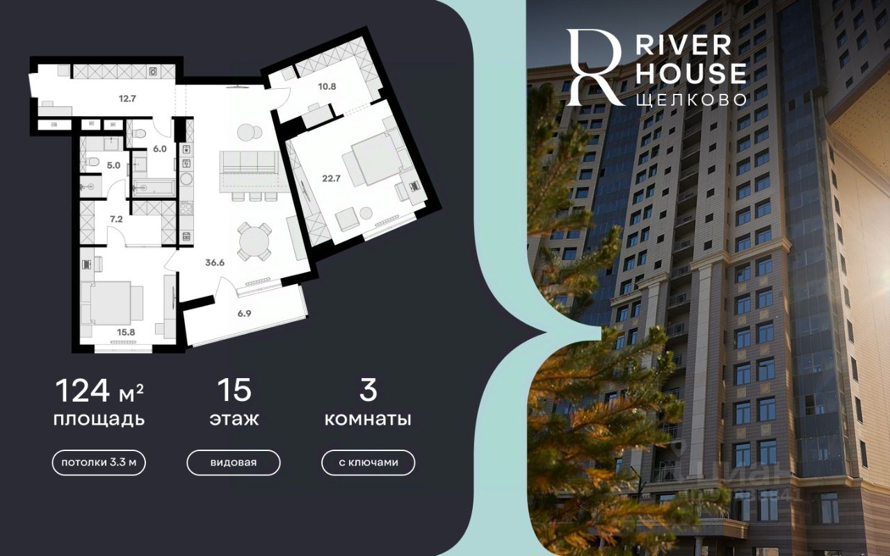 Премиальная видовая семейная квартира в жилом комплексе RIVER HOUSE Щёлково. Это изысканный жилой проект премиум-класса с фокусом на качественное семейное проживание в самом центре города на набережной реки Клязьма.