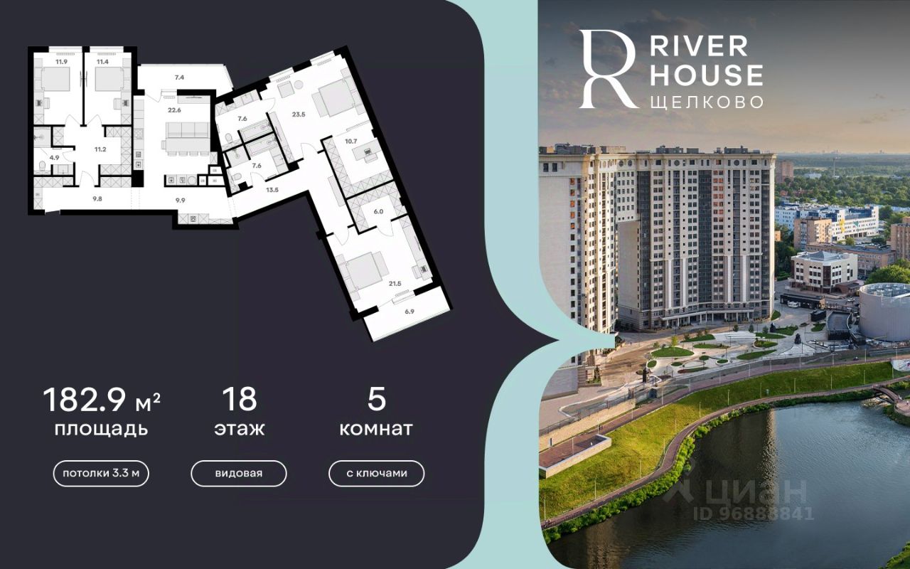 Премиальная видовая семейная квартира в жилом комплексе RIVER HOUSE Щёлково. Это изысканный жилой проект премиум-класса с фокусом на качественное семейное проживание в самом центре города на набережной реки Клязьма.