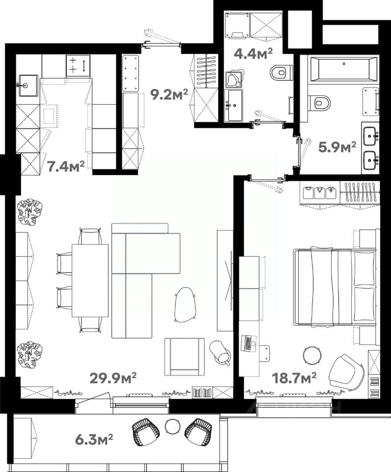 Площадь кухни29,9 м²