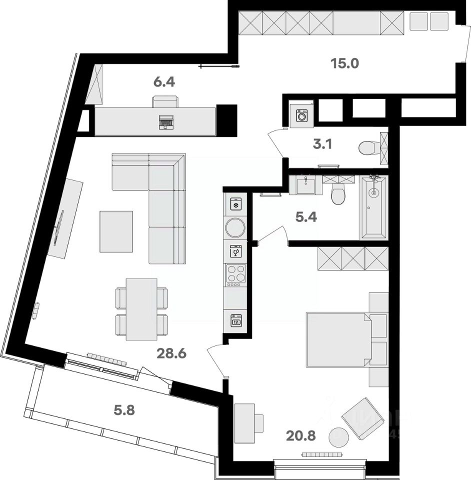 Просторная, светлая семейная квартира с предчистовой отделкой в жилом комплексе бизнес-класса RIVER HOUSE Щёлково!