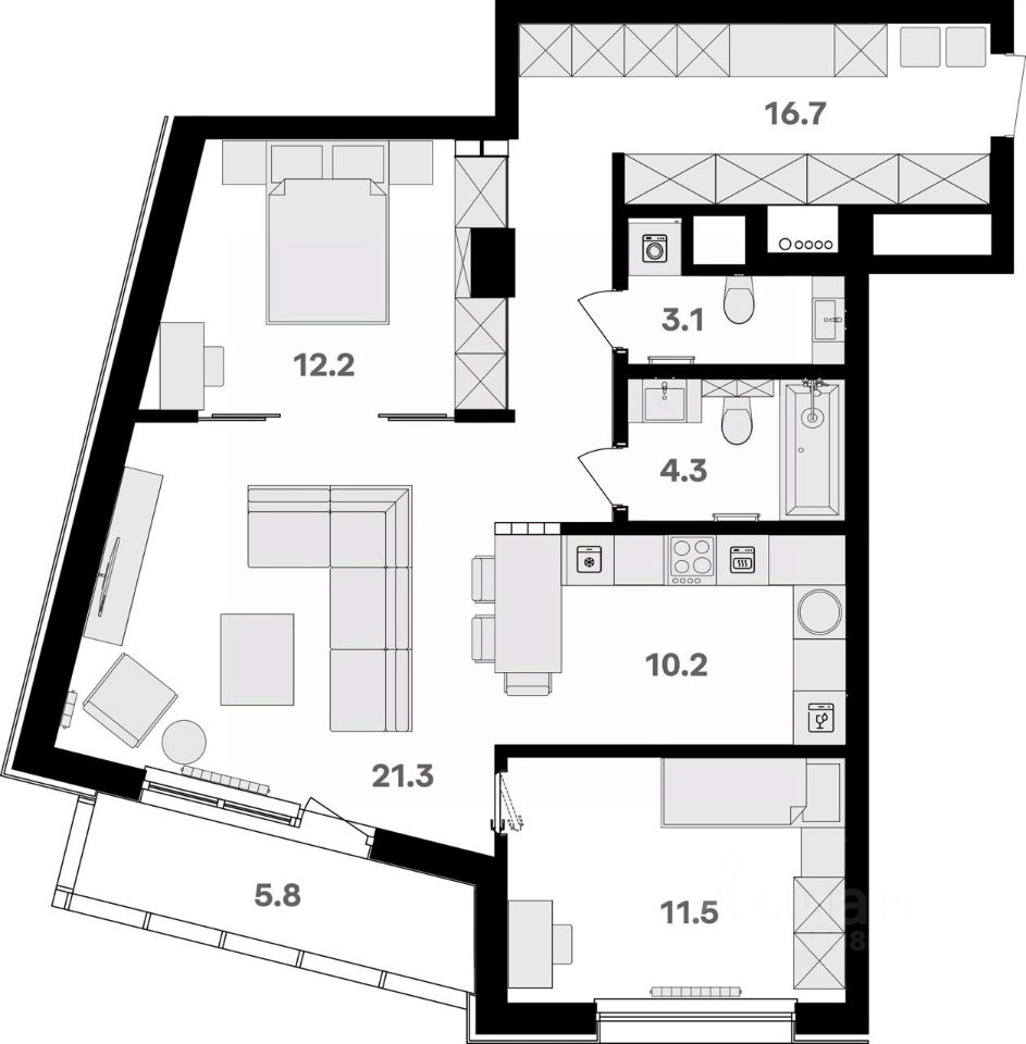 - Просторная лоджия, где можно обустроить зону отдыха или рабочее место.
