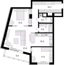 - Высокие потолки 3,3 м - ощущение свободы и воздуха.