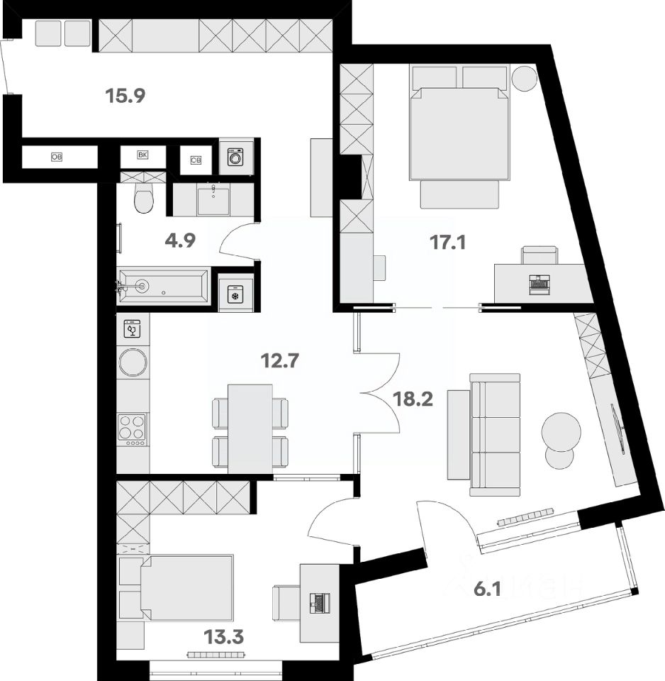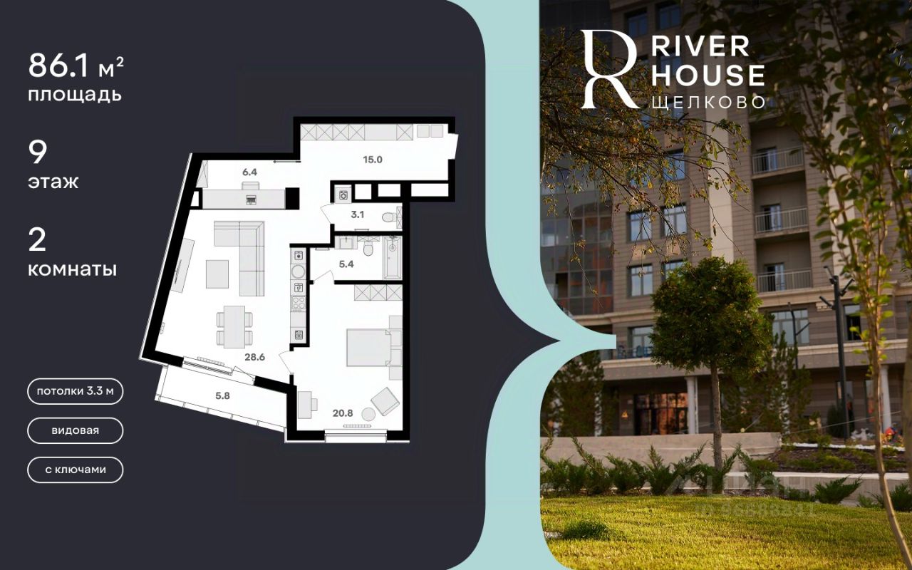Просторная, светлая семейная квартира с предчистовой отделкой в жилом комплексе бизнес-класса RIVER HOUSE Щёлково!