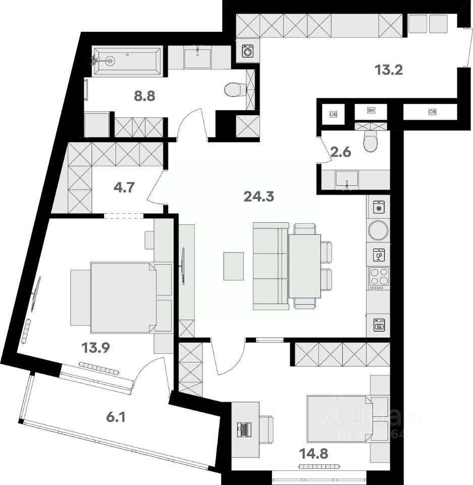 Площадь кухни24,3 м²