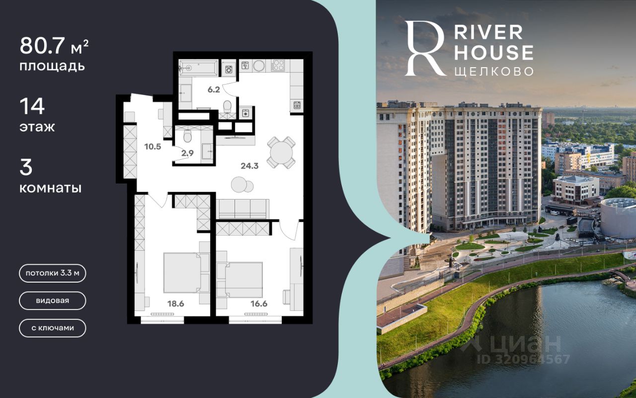 Просторная, светлая семейная квартира в жилом комплексе бизнес-класса RIVER HOUSE Щёлково! Семейная ипотека от 3.5%. Беспроцентная рассрочка. Индивидуальные дисконтные предложения. Дом сдан. Оформление в собственность. Ключи сразу после заключения договора купли-продажи. RIVER HOUSE Щёлково это изысканный жилой проект полноценного бизнес-класса с фокусом на качественное семейное проживание в самом центре города на набережной реки Клязьма. - Оригинальная архитектура, увеличенная площадь остекления, эксклюзивная вечерняя подсветка фасада. - Просторные семейные квартиры с высокими потолками 3.3 м в вариантах черновой, предчистовой и чистовой отделки. - Роскошные трехуровневые пентхаусы с открытыми террасами на кровле. - Лаунж-зона на кровле, где можно устроить уютный вечер с друзьями, отдохнуть и полюбоваться панорамными видами на город. - Вся необходимая инфраструктура и сервисы на первых двух этажах: детский сад, супермаркет, институт красоты, медицинский центр, стоматология, ПВЗ и многое другое. - В каждом подъезде 4 лифта один со спуском в паркинг, лобби с авторским дизайном, консьерж-сервисом и мягкой зоной ожидания. - Круглосуточная охрана, видеонаблюдение, бесключевая система доступа. - Двухуровневый подземный паркинг на 540 машино-мест и 260 кладовых. - Закрытый двор-парк без машин с ландшафтным дизайном, детскими и спортивными площадками, летним амфитеатром и собственным спуском к набережной. - Шаговая доступность ко всей инфраструктуре центра города: школы, детские сады, гимназии, кафе и рестораны, кинотеатр, перинатальный центр. - Три благоустроенных парка, в один из которых - Солнечные часы - можно спуститься со двора дома. RIVER HOUSE Щёлково это дом-впечатление и особый статус, которые останутся вашим детям и станут частью фамильной истории.