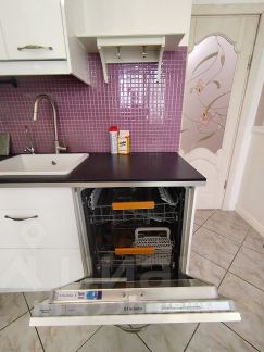 встроенная кухня, посудомоечная машина, варочная панель, духовой шкаф, вытяжка,кухонный стол, стулья.