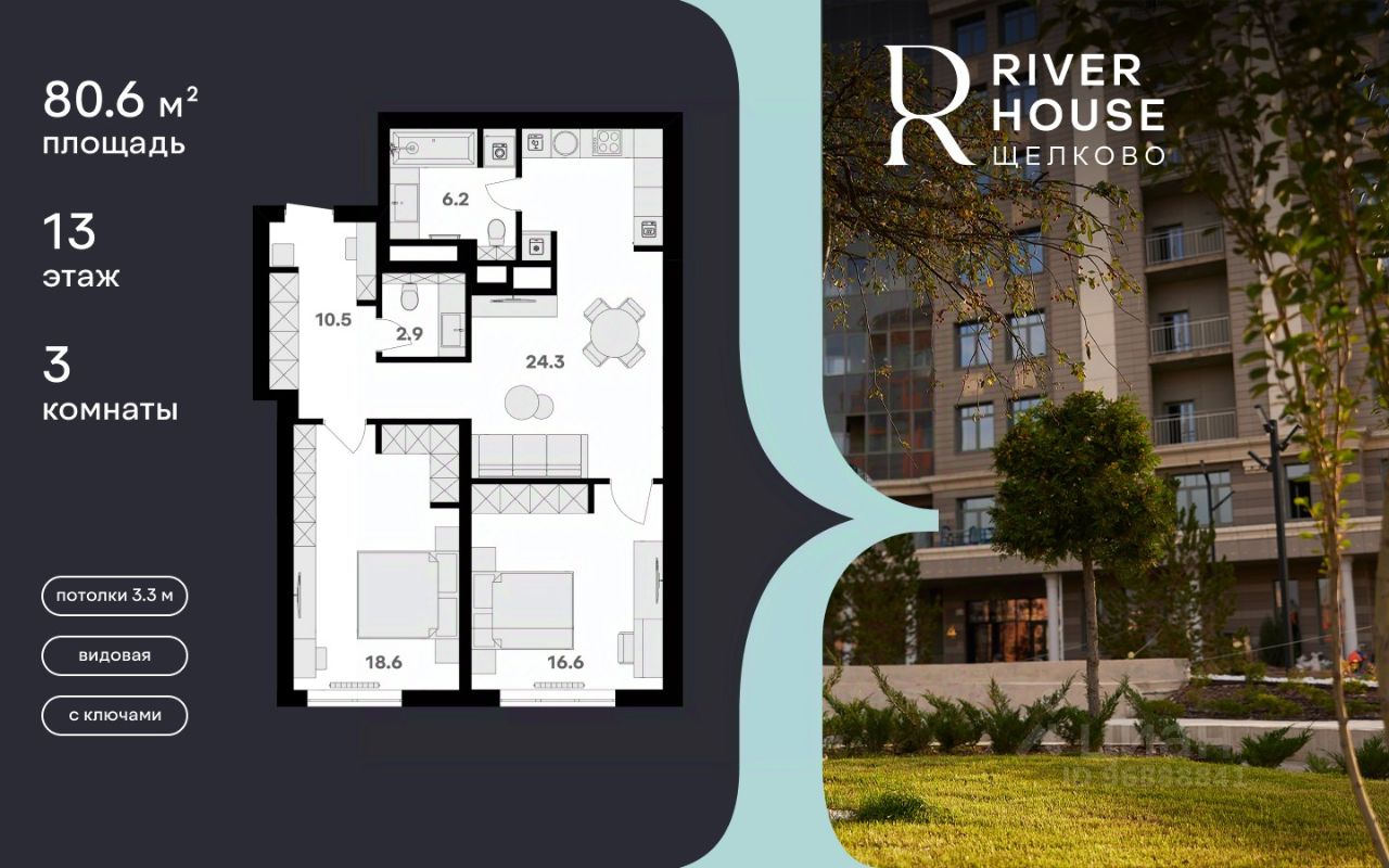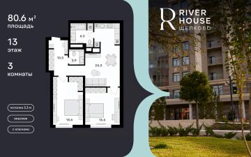 Просторная семейная квартира в жилом комплексе RIVER HOUSE Щёлково. Это изысканный жилой проект премиум-класса с фокусом на качественное семейное проживание в самом центре города на набережной реки Клязьма.