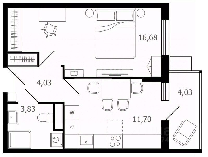 Вашему вниманию предлагается 1-комнатная квартира с балконом