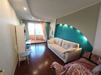 Состояние квартиры хорошее, можно сразу заехать и жить, остается практически вся мебель: кухня, шкафы, диван; полы - паркетная доска, плитка; стены - обои; потолки - покраска.