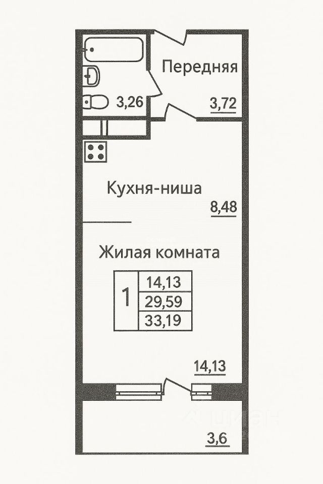 Арт. 120145381 Продается просторная квартира-студия в ЖК Богородский, 30,8 кв.м. (г. Щелково, МО).