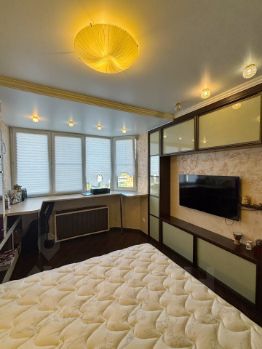 - В квартире выполнена продуманная перепланировка. Лоджия присоединена к жилой зоне, за счет чего образована просторная спальня площадью 15.2 кв.м. с большим рабочим пространством в зоне окна и кухня-гостиная 22 кв.м., что максимально удобно для проживания молодой семьи. Перепланировка узаконена!