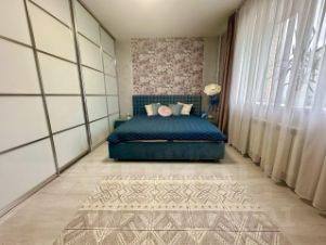 Ремонт выполнен в приятных тонах, с учетом всех современных тенденций. Установлен кондиционер, который рассчитан на мощность, чтобы охладить всю квартиру, заменены коммуникации. Интернет заведен в квартиру.