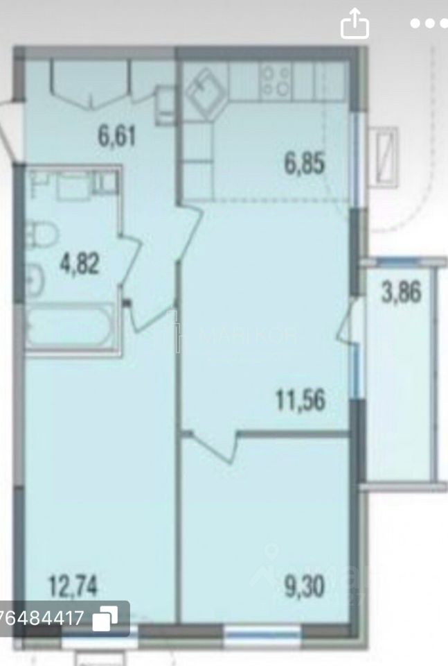 Планировка квартиры - кухня-гостиная и 2 изолированные спальни, но отсутствие перегородок позволяет воплотить свой дизайн-проект.