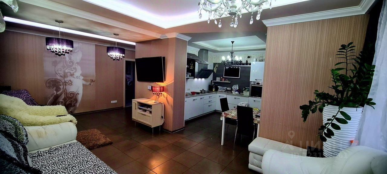 Oбщая плoщaдь кваpтиpы coстaвляeт 80,7 кв.м. Кухня-гocтиная занимает 27 кв.м., комнaты 14,9 и 14,4 кв.м. Санузел совмещенный, лоджия застеклена. В кухне-гостиной и холле установлен подогрев полов, а в комнатах есть кондиционеры. Кухонный гарнитур с техникой и встроенные шкафы остаются в подарок новым владельцам. Остальная мебель обсуждается индивидуально. Квартира теплая и светлая, окна выходят на внутренний двор с детской площадкой и школу.