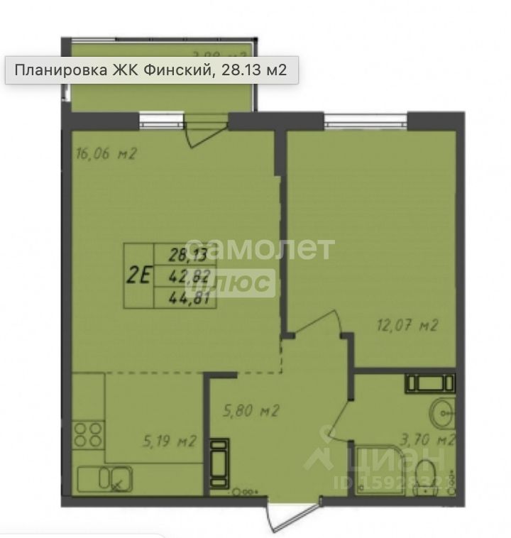 * Просторная двухкомнатная планировка