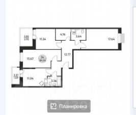 Продается просторная трехкомнатная квартира 84.2 кв. М. В ЖК Дом на Сиреневой.