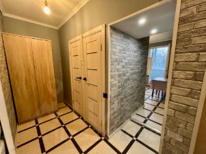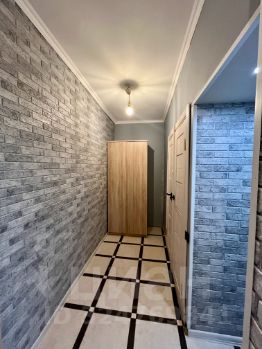 Квартира с современным ремонтом. Сделана новая проводка, заменены радиаторы отопления, пластиковый стеклопакет в комнате. Напольное покрытие в кухне и коридоре - плитка, в жилой комнате - ламинат. Поменяны двери. Балкон остеклен.