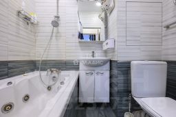 Общая площадь квартиры 41,6 метров + лоджия, комната 12 метров, кухня-гостиная 18 метров а. В квартире выполнен ремонт, пол выложен ламинатом и плиткой, ванная комната отделана плиткой ванна с гидромассажем, есть ниша для стиральной машинки, установлены полы с подогревом на кухне, в коридоре и ванной. Лоджия с отделкой, во всей квартире окна ПВХ.