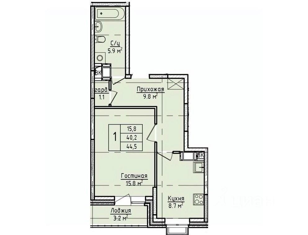 Продаётся 1-комнатная квартира в строящемся доме (Корпус 4), срок сдачи: IV-кв. 2026, общей площадью 44.5 кв.м., на 17 этаже. Расположение, транспортная доступность