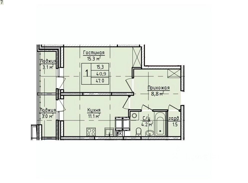 Продаётся 1-комнатная квартира в строящемся доме (Корпус 4), срок сдачи: IV-кв. 2026, общей площадью 47 кв.м., на 2 этаже. Расположение, транспортная доступность