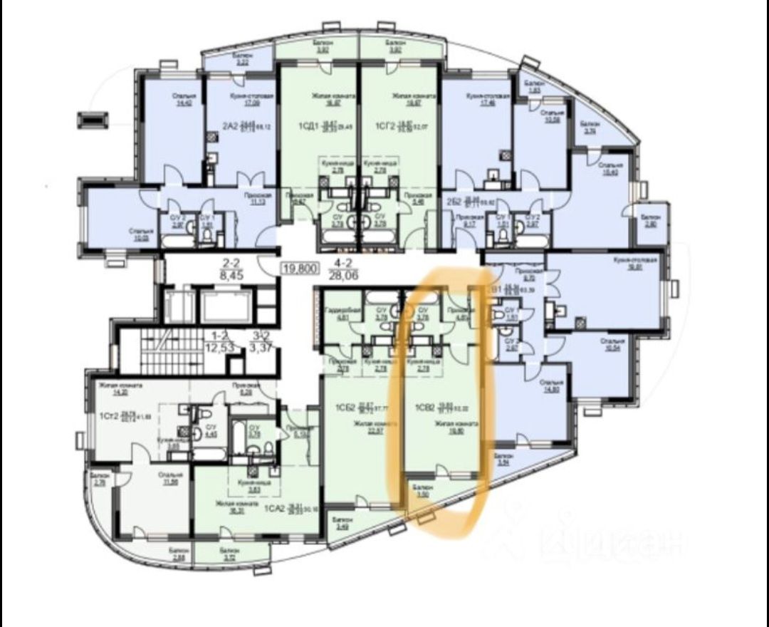 Прихожая и санузел отделены от жилой зоны перегородкой.