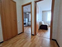 В квартире выполнен косметический ремонт, а также частично меблирована (диван, кухонный гарнитур, электрическая плита, стол, стулья, стиральная машинка, микроволновка, холодильник, стенка, телевизор). Совмещённый санузел оснащён всеми необходимыми коммуникациями. На лоджии можно организовать зону отдыха или хранения.