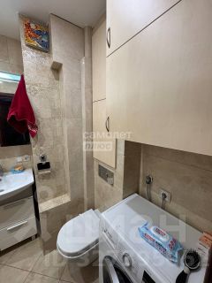 Санузел совмещенный, с удобной планировкой и расположением всей сантехники, так же установлена стиральная машина и тропический душ в ванной.