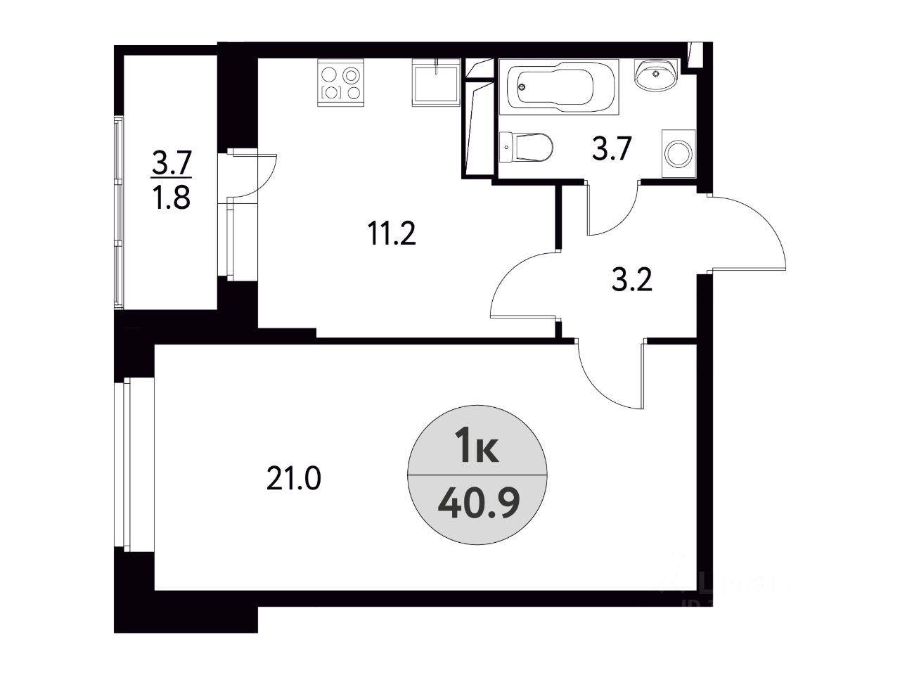 Общая площадь40,9 м²