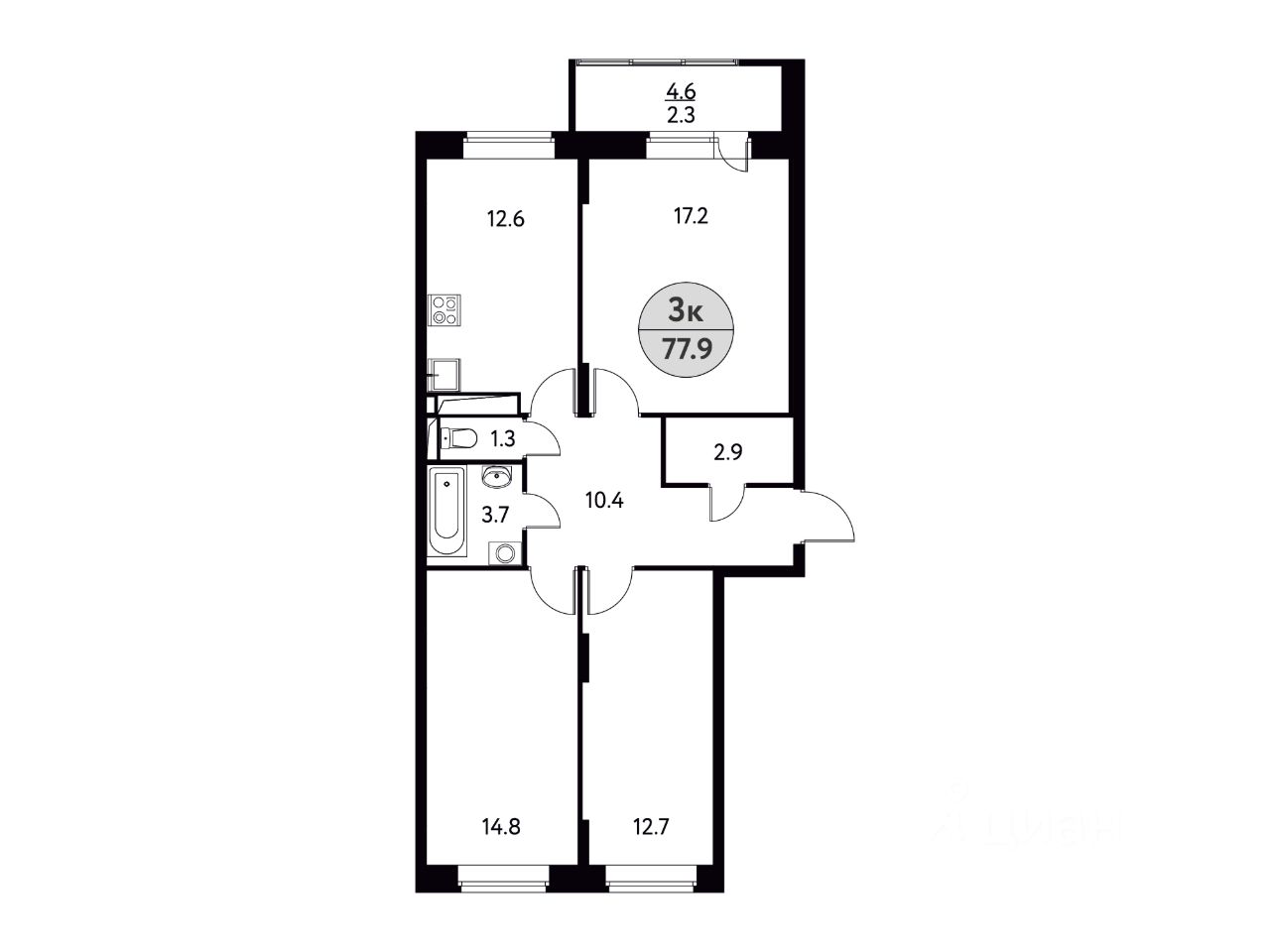Общая площадь77,9 м²