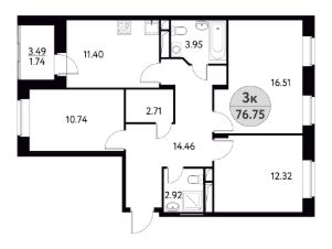 Общая площадь76,75 м²