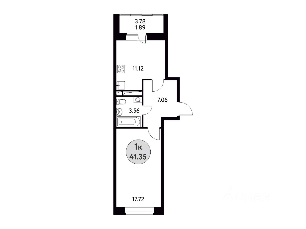 Продается 1-комн. квартира, 41,35 м²