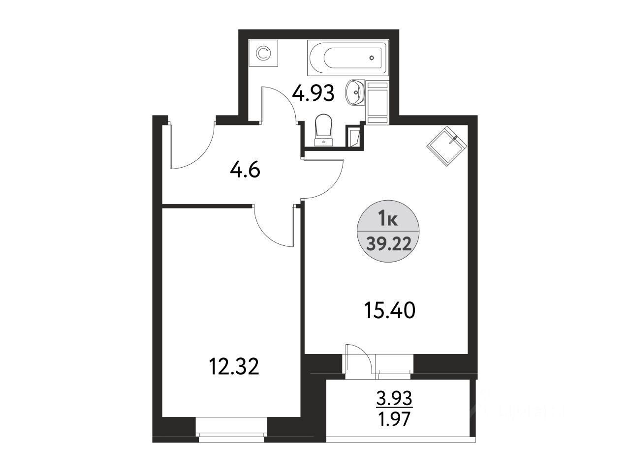 Общая площадь39,22 м²