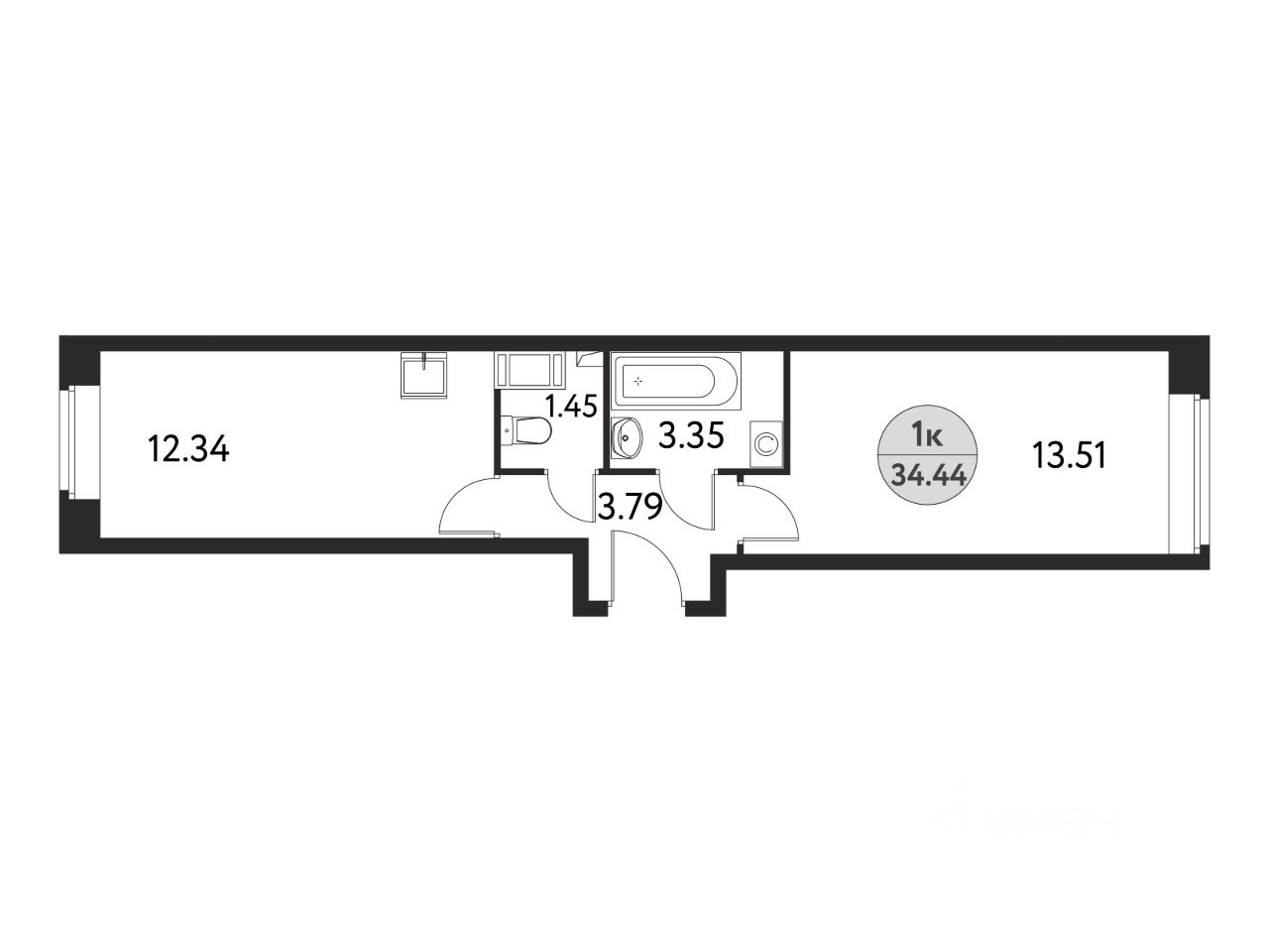 Общая площадь34,44 м²