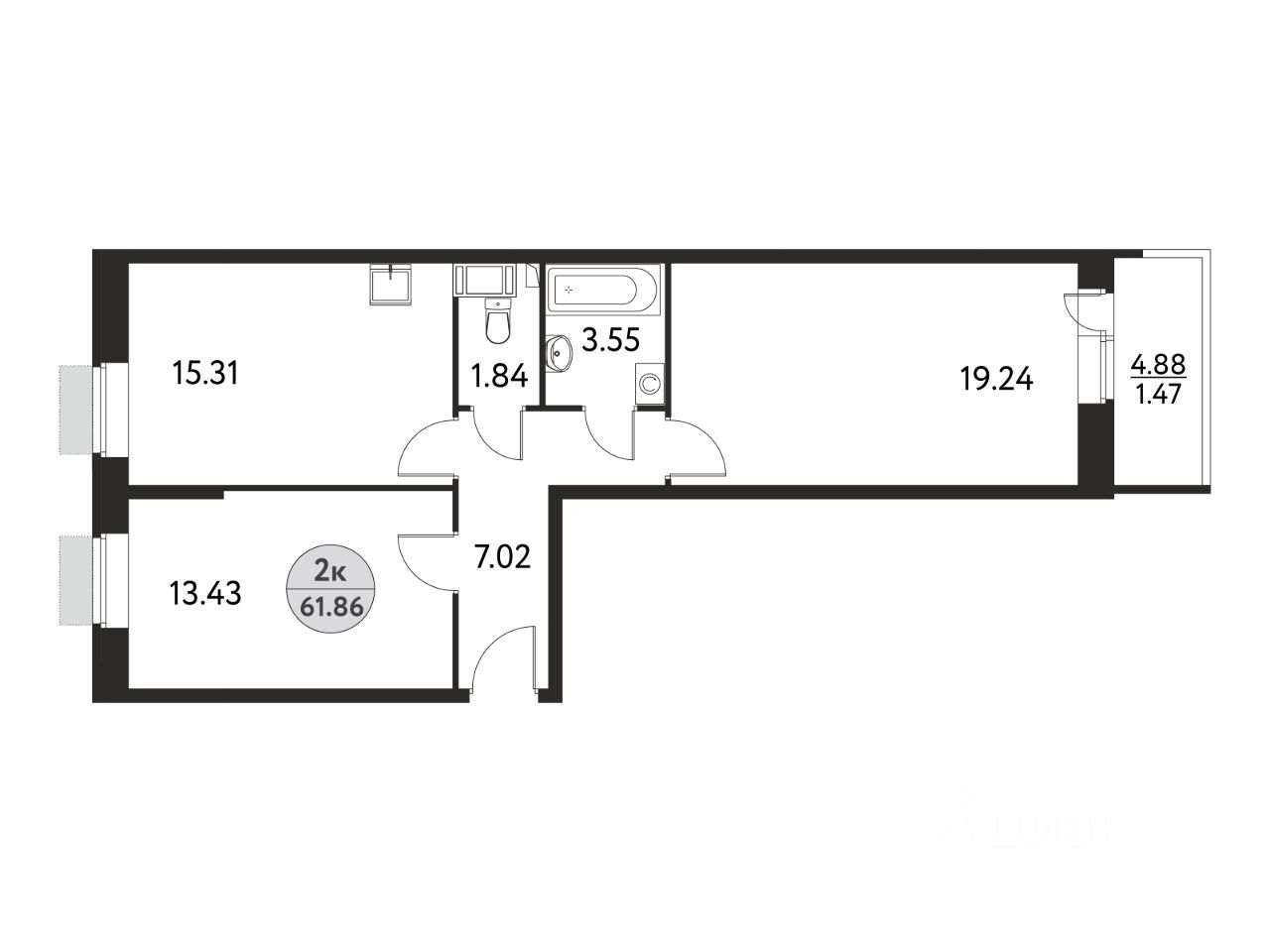 Общая площадь61,86 м²