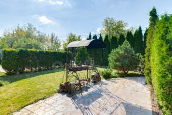 Территория ровная с художественным ландшафтным дизайном: построена ливневая система, выложены широкие дорожки 2м шириной, площадка для отдыха из тротуарной брусчатки, высажены множество хвойных вечнозеленых растений и газон. Территория озеленена деревьями и живой изгородью. Все это дает ощущение полной тишины и гармонии с природой.