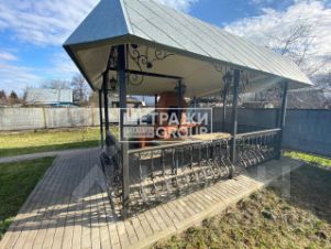 Участок площадью 15 соток благоустроен и оснащён всем необходимым. На территории расположены: сооружение для складирования хозяйственной техники, уличный туалет, крытая беседка с мангалом, две теплицы. По участку разведены садовая вода и электричество.
