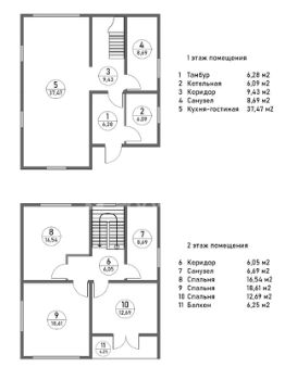Просторная кухня-гостиная; три спальные комнаты; с/у на каждом этаже; техническое помещение.