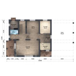 Дом построен в 2017 году, общей площадью 224.7 кв.м. (+навес на 2 машины, шириной 6,5 метров и площадью 43 м2, суммарно 278 м2.).