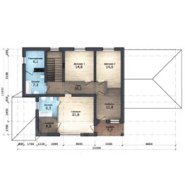 На втором этаже: просторная мастер-спальня со своей гардеробной, ванной комнатой и выходом на балкон; кабинет; 2 детские комнаты; просторная ванная; отдельная постирочная комната; коридор.